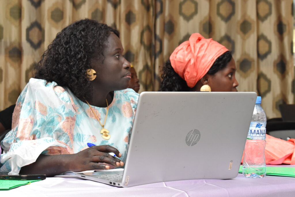 Teint noir, Marième Mbaye se donne à fond pour le Réseau Fédéral des Calebasses de Solidarité Kambeng Kafo de l’Association pour la Lutte contre Soudure et l’Endettement (ALSE). Elle suit régulièrement les activités d’animation du réseau. Elle produit les rapports et participe aux rencontres de coordination d’ALSE.